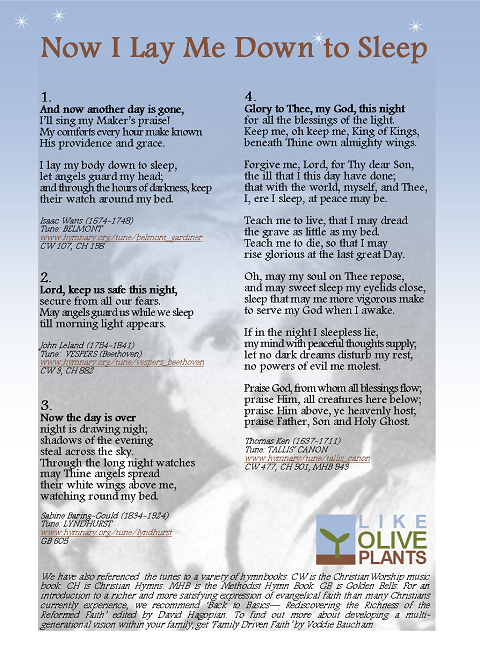 You will find here prayers which are . They have stood the test of time. They are the opposite of the shallow children’s songs many of us parents were raised on. Sometimes the blunt and stark themes may jolt you, but be reassured: previous generations of Christian parents loved these words, and lovingly imparted them. They did not underestimate the reality of children’s bedtime fears. They did not hesitate to spell out a biblical response in verse. Their  prayers offered genuine comfort against the harsh realities of life in a fallen world. Their children appreciated it. When we use this kind of material, we are expressing a unity with our forefathers, from whom we can learn so much.
